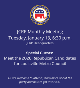 All are welcome – location is JCRP HQ. Guests – Please RSVP to louisville_gop@icloud.com – thank you for joining us!